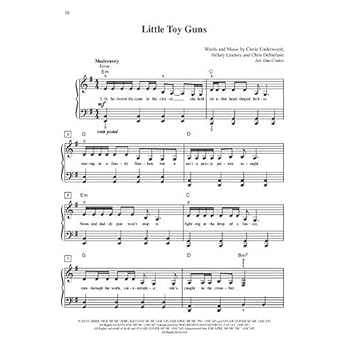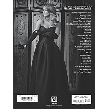 Carrie Underwood's impressive Greatest Hits: Decade #1 collects all the hit singles that have kept her career in the stratosphere since her American Idol launch. This book provides easy piano arrangements of songs from that collection and includes a beautiful, 4-page color insert. Titles: Something in the Water * Little Toy Guns * Inside Your Heaven * Jesus, Take the Wheel * Don't Forget to Remember Me * Before He Cheats * Wasted * So Small * All-American Girl * Last Name * Just a Dream * I Told You So (feat. Randy Travis) * Cowboy Casanova * Temporary Home * Undo It * Mama's Song * Remind Me (duet with Brad Paisley) * Good Girl * Blown Away * Two Black Cadillacs * See You Again * How Great Thou Art (with Vince Gill).